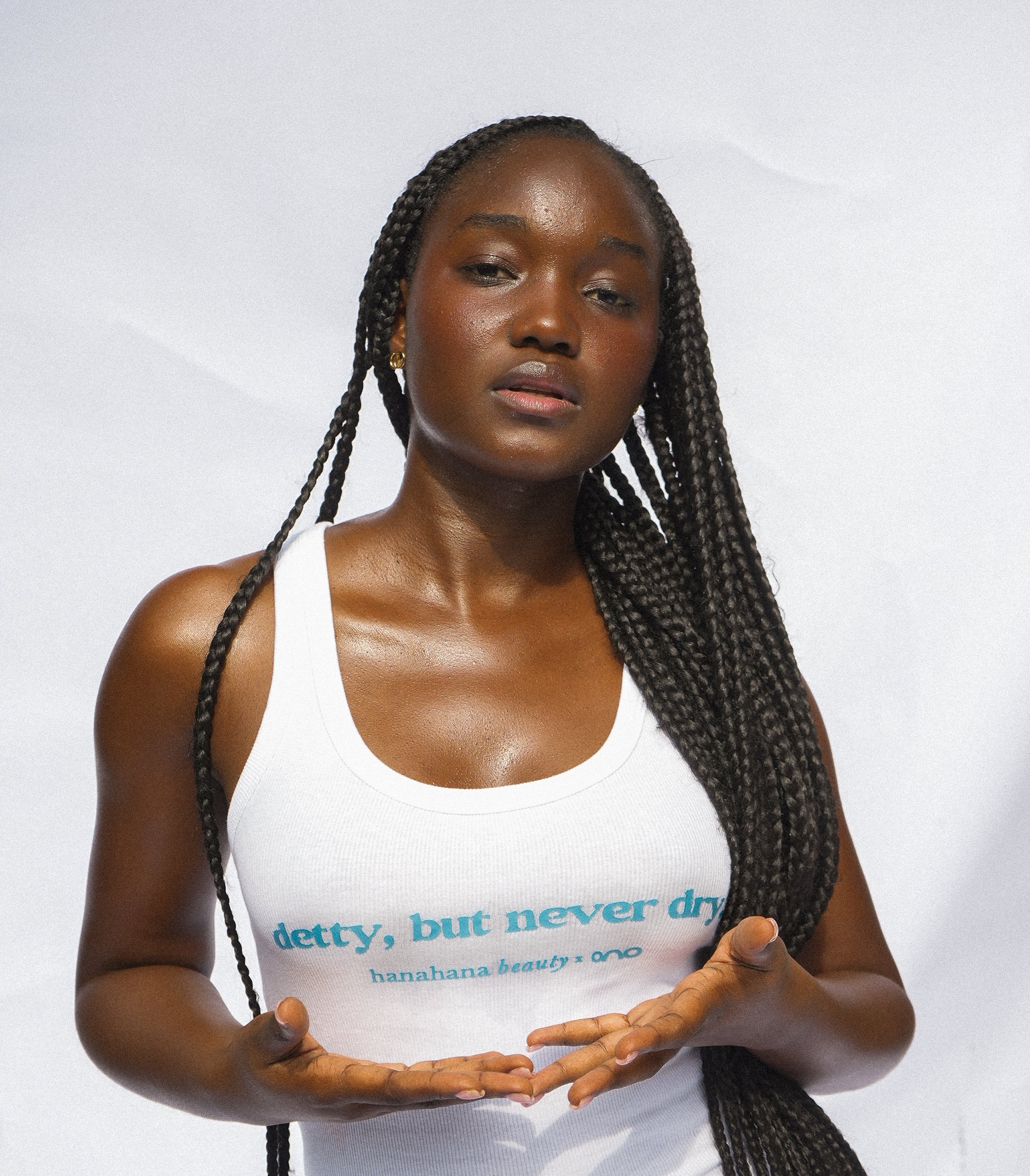 Our limited-edition Hanahana Beauty × ONO Detty, But Never Dry Tank is designed to move with you — from everyday rituals to active moments and everything in between. Soft, breathable, and effortlessly versatile, this tank is made for living fully while staying comfortable and dry.