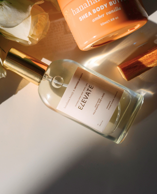 Created in collaboration with Universe of Harth for our 7th anniversary, Elevate is inspired by our signature shea body butter scent, amber vanilla. This soft, yet spicy unisex spray is not only meant to be worn, but experienced. Enjoy on your body, in your space, or on your linens.